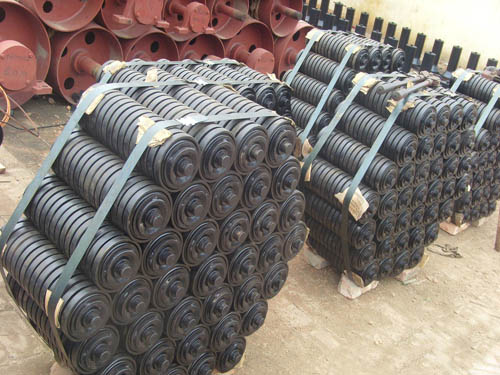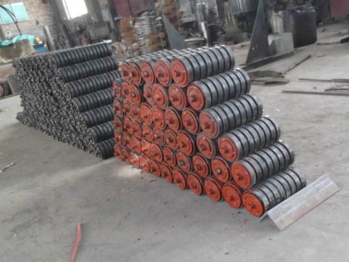 緩沖托輥安裝在輸送機(jī)受料段的下方,減小落料時(shí)物料對(duì)輸送帶的沖擊,以廷長輸送帶的使用壽命.緩沖托輥的間距一般100-600毫米。